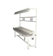 波峰自動出板接(jiē)駁台 A.台灣STK帶牙箱(xiāng)帶調速專(zhuān)用控製馬達,運(yùn)行平穩不抖動。 B.40*40專用鋁型材配合特製連接角度調節器,隻(zhī)要(yào)擰動調節手柄即可任意調節接駁角度。 C.采用進口2MM厚防靜電輸送皮帶,經久耐磨。 D.特(tè)殊升降式套筒結構,隻(zhī)要擰動升降手柄即可(kě)任意調節接駁高度。 E.高度調節:請用所配的專用扳手將內六角擰鬆,再將接駁台的上部提起,再擰緊螺釘即可。 F.速度調節:請使用調速器上的旋(xuán)鈕,左邊低速右邊高速。 G.水平調節(jiē):請使(shǐ)用機腳(jiǎo)的腳杯調平。 H.接駁角度調節:請先(xiān)將(jiāng)兩條支撐杆螺釘擰鬆,再將中間的(de)連接手柄擰鬆(sōng),調到一個適當的角度,再將各部分鎖緊。 |