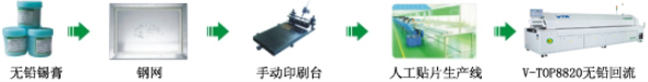 人工(gōng)貼片生產線 人(rén)工(gōng)貼片生產線主要是人工模擬貼(tiē)片機的貼(tiē)片嘴,通過人工貼片筆自(zì)身產生的空氣壓強差(反向真空),將貼片元器件從料帶(dài)直接吸起,然後通過人工將元器件放置於相應的PADS位上,通過已調整的氣壓吸(xī)力,人工貼片筆吸著力小於錫漿(jiāng)(貼片膠)的(de)粘著力,元器件自動放置(zhì)在相應的PADS上.